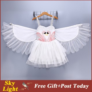Girls Dress Swan Wing Kids Dresses For Girls Embroidery Flamingo
