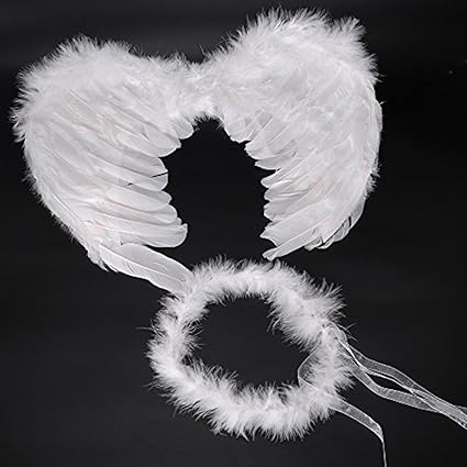 Amazoncom Angel Wings And Halo Angel Costume White Feather Wing