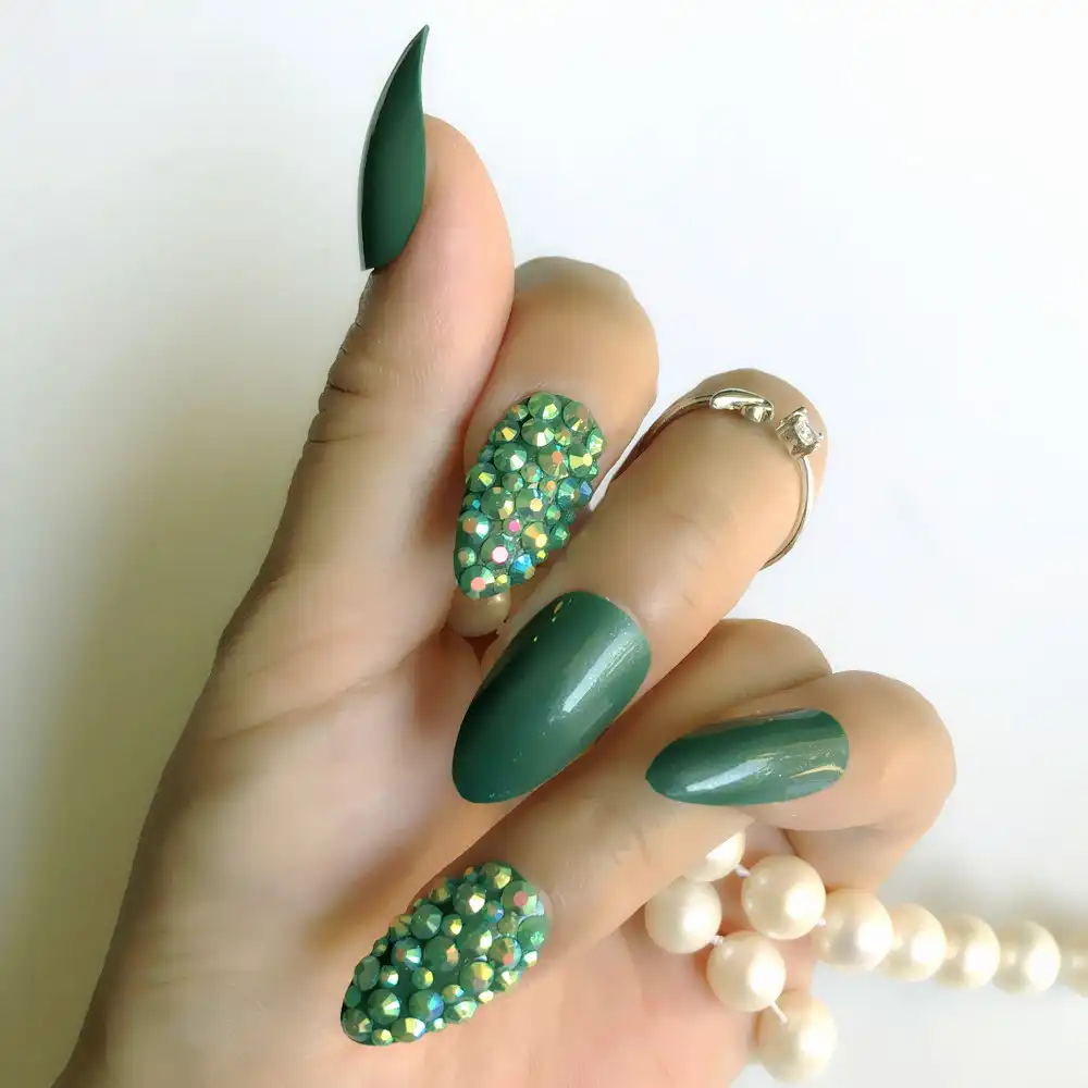 Beautifully Made All Drill Acrylic Nail Tip Green Full Set Nail
