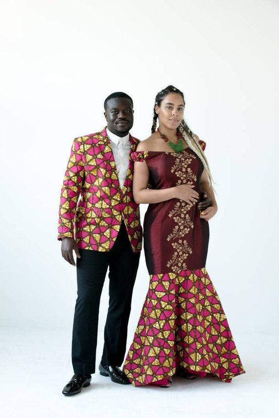 African Print Matching Wedding Couple Outfitafrican Couple Etsy