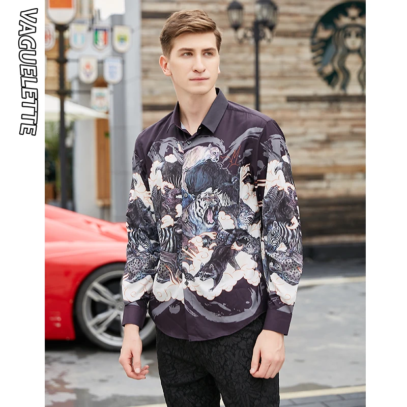 Vaguelette Awesome Stylish Shirt Men Animal Pattern Printed Shirt