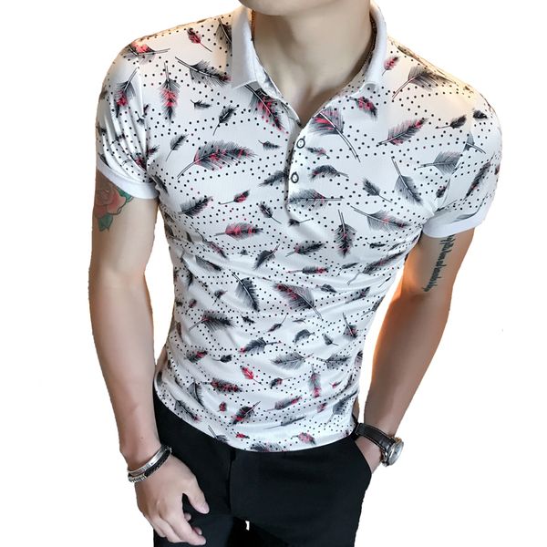 2019 Feather Print Shirt Men 2018 Summer Short Sleeve Black White