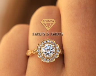 Art Deco 14k White Gold Starburst Halo Round Diamond